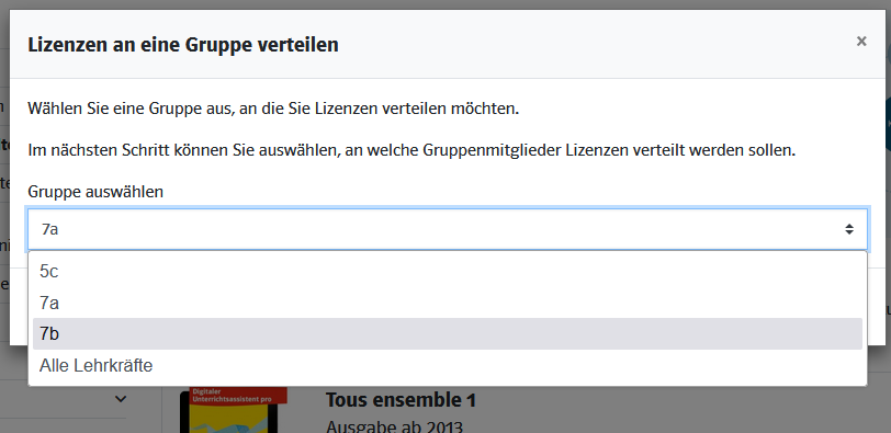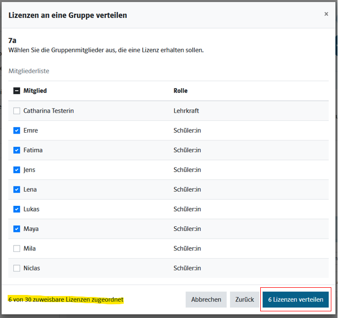 3) Im nächsten Schritt können Sie die Lizenzen an alle oder ausgewählte Gruppenmitglieder verteilen.