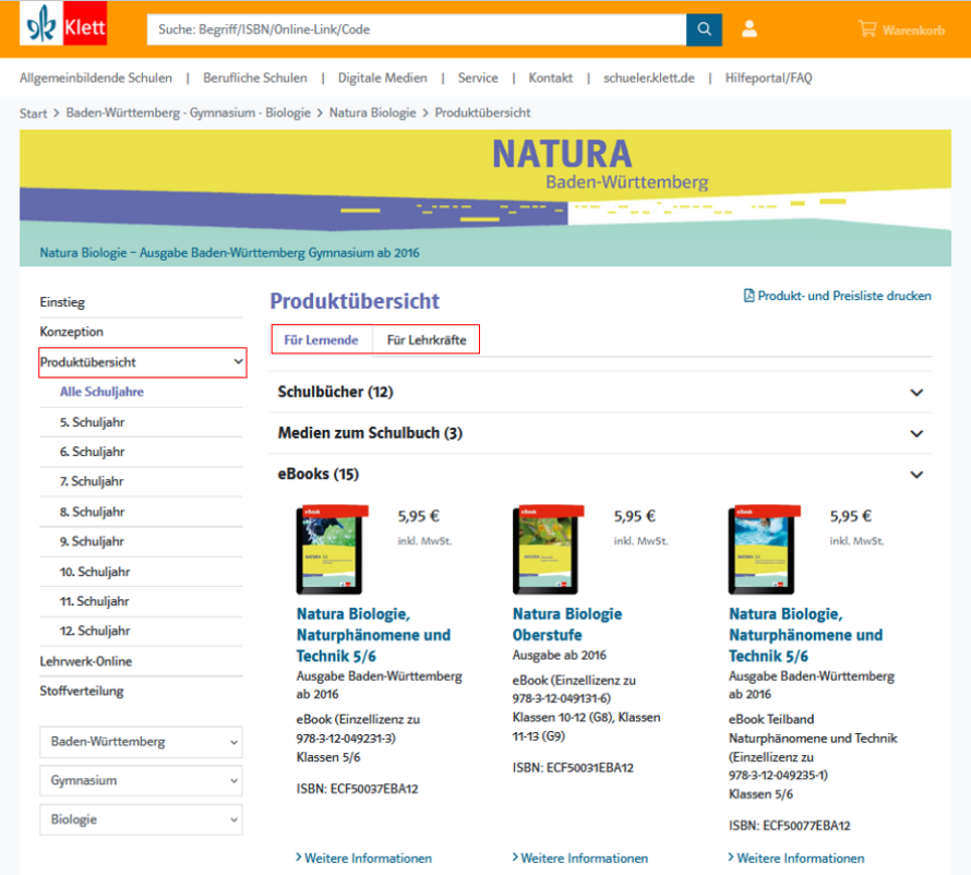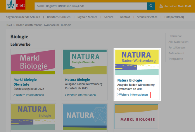 2. Klicken Sie auf "Weitere Informationen", um zu den Produkten zur Lehrwerksreihe zu gelangen. Alle Produkte zu Ihrem Lehrwerk finden Sie anschließend im Reiter Produktübersicht.