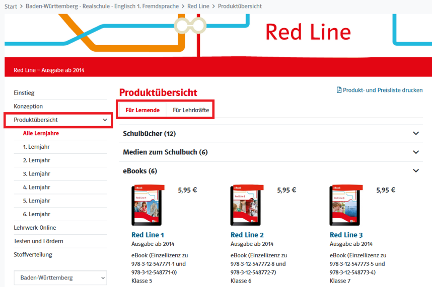 2. Klicken Sie auf das gesuchte Lehrwerk. Alle Produkte zum Lehrwerk finden Sie anschließend im Reiter Produktübersicht. Im Bereich Schülerinnen und Schüler finden Sie nun das gewünschte digitale Produkt gelistet.