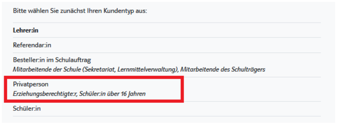 Bitte prüfen Sie, ob Sie bereits ein Mein Klett-Onlinekonto haben. Falls nicht, haben Sie die Möglichkeit, sich hier als Privatkunde zu registrieren.