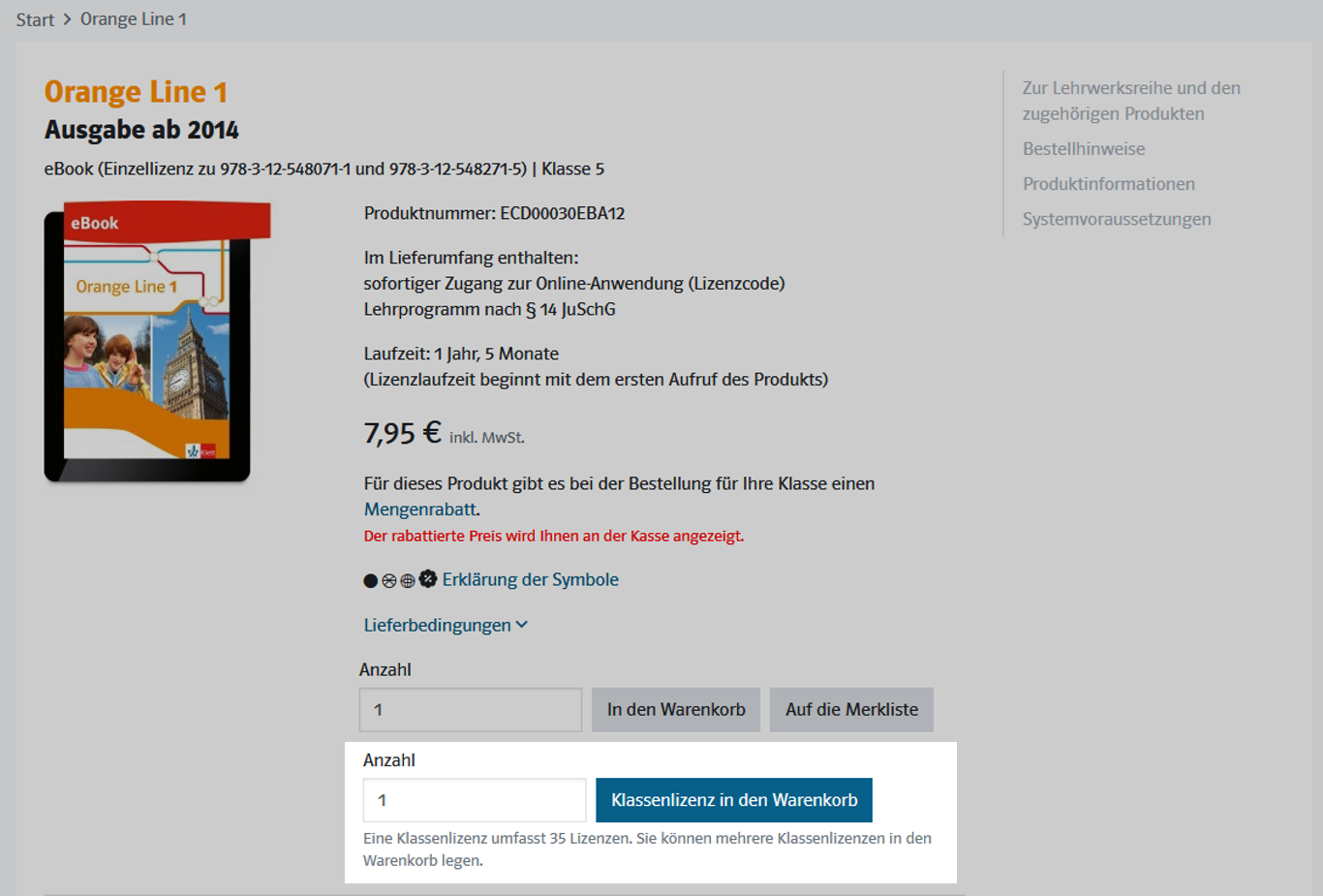 Eine (Anzahl 1) Klassenlizenz für eBooks umfasst 35 Einzellizenzen, es können mehrere Klassenlizenzen erworben werden.